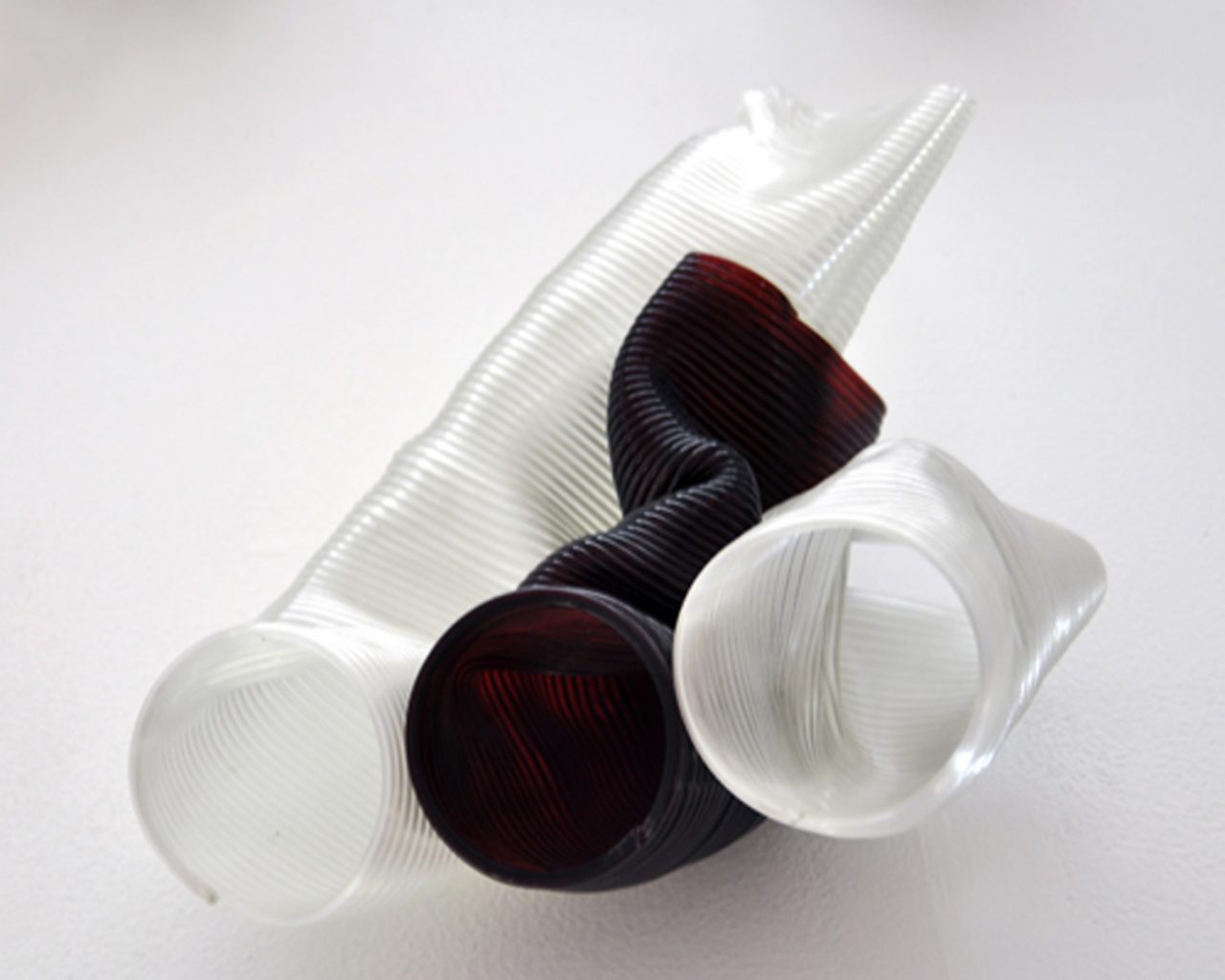 For example, a large skin of crystal glows with the warmth of the human hand as it is touched, a self-supporting arch made of glass filaments is flame-worked entirely by passers-by, and a dying tradition of glass bangles looks to the human hand to reconstruct its language.