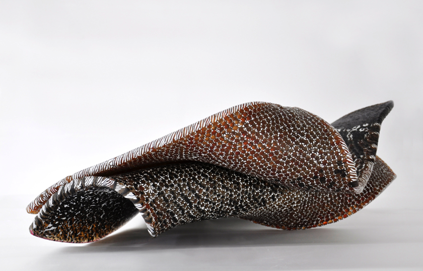 Anjali Srinivasan was first seduced by the medium of hot glass during an internship at a crystal company as part of her formal education at the National Institute of Fashion Technology, a design school in Delhi. Drawn to the “magical, fluid, molten glow of glass,” she went on to study glass and digital media at Rhode Island School of Design and has been experimenting with glass arts ever since, often transforming the material into something that doesn’t look or behave like glass.