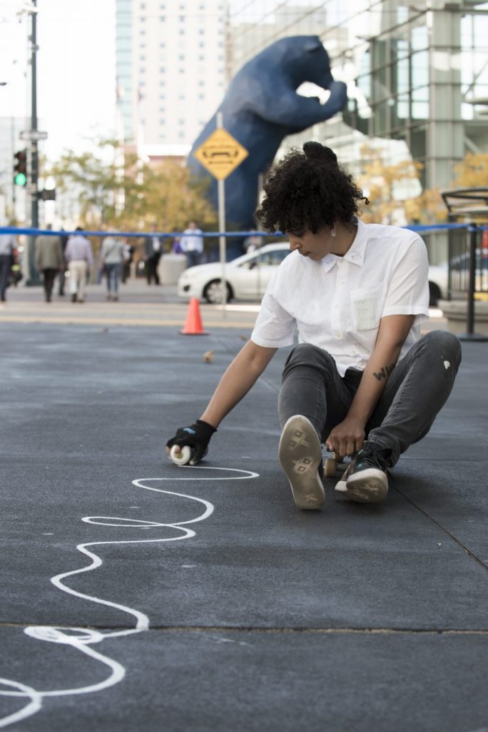 Creating narrative events is also important in telling the story of your project, the local community, and the artist’s experiences. In Martin’s “Don’t Mind. You + Me” bench sculpture, a message of togetherness springs forth from her design through bold, yet straightforward words and her trademark style of black and white drawings. As a self-described “cultural facilitator,” Martin emphasizes the way colors, shapes, philosophies, and identities are intertwined, chronicling the connected paths of us all.