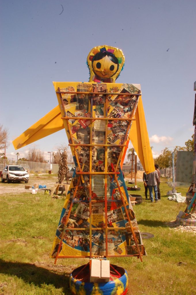 Bliesner soon received a $2,000 fund from the Synergy Foundation and searched for artists to help him create the sculpture. He received interest from sixteen artists and gave them each $100 for materials to build the sculpture. The group of artists worked with a variety of materials including wood, chicken wire, old tires, scarves, and more. Artists include Edwin Lohr, Carlos Quezada, Marcus Montes, Tarrah Aroonsakool, Iain Gunn, Dianne Brunner, and Randy Lane, Vicente Rivera, Elida Chavez, Pete Evaristo, Melody De Los Cabos, and Mia Mercado a twelve-year-old emerging artist attending SCPA. Half of the artists are from City Heights and the other half from other cities.