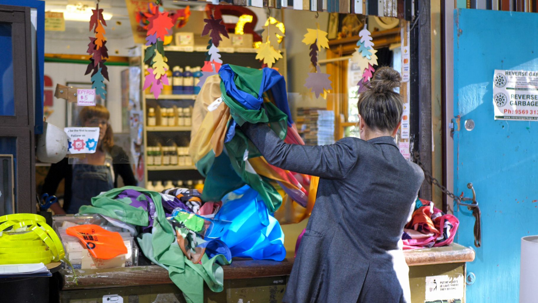 After multiple trips to Reverse Garbage in Marrickville, she was sure she had a colorful palette of recycled, reusable mediums to work with.