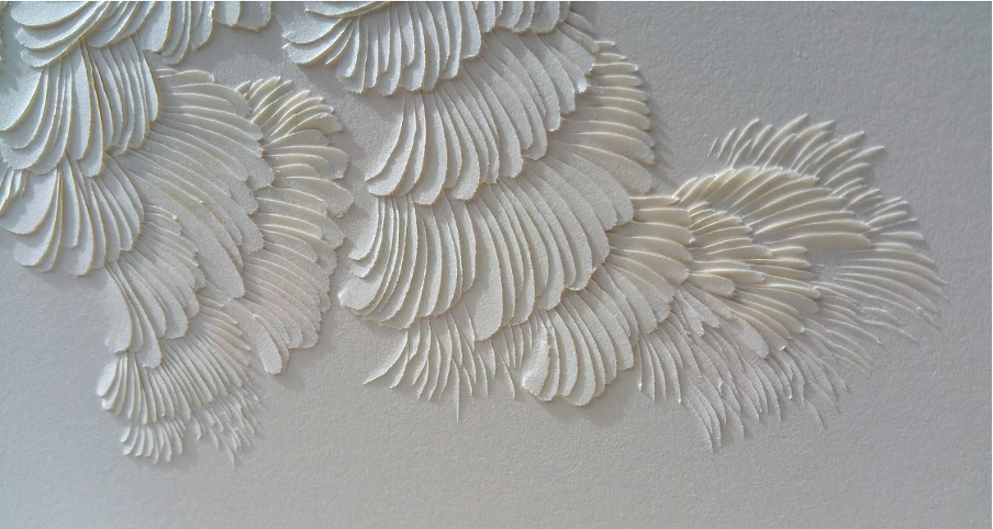 Another way to add texture is to use unconventional media like paper. You can refer to the works of Domitilla Biondi for inspiration. She’s an Italian artist who layers paper on the canvas to create unusual, mostly white-on-white works. The images she creates with paper are mostly floral or inspired by nature, but you can go in any other direction if you don’t want to copy her work directly.