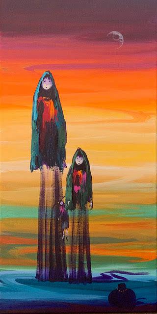 Perhaps most compelling among Hayes’ diverse body of work are her surrealist acrylic paintings, particularly the mesmerizing Spirit Warrior and Star Traveler series. These otherworldly compositions map territories that exist beyond ordinary consciousness.