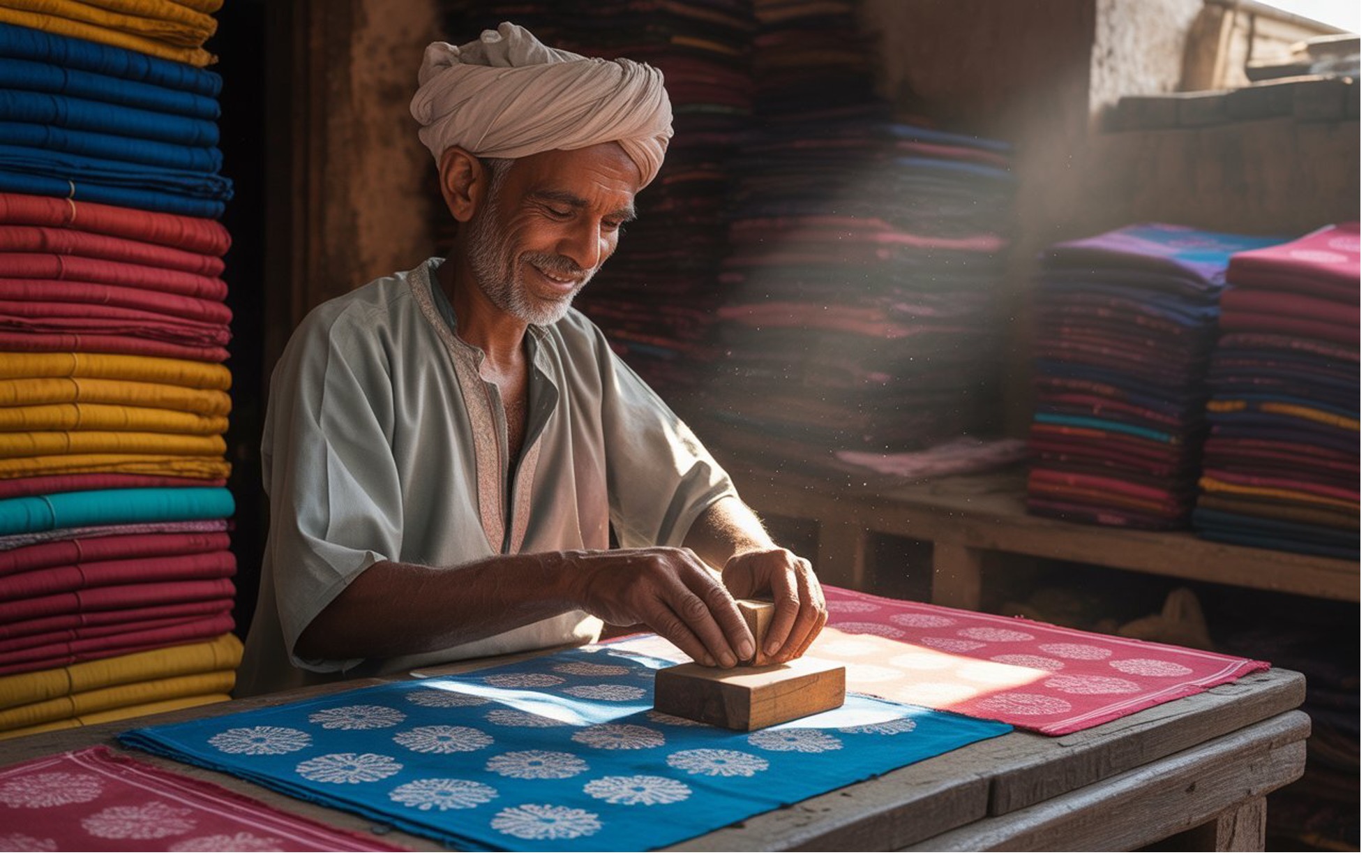 I still remember walking into a small Bagru print workshop in Rajasthan. The smell of natural dyes filled the air. The steady tap of carved wooden blocks on fabric made a calm, rhythmic sound. It felt like stepping into another time. That moment showed me how traditional craft links us to something deep. It ties us to our culture, our past, and the beauty of human creativity.