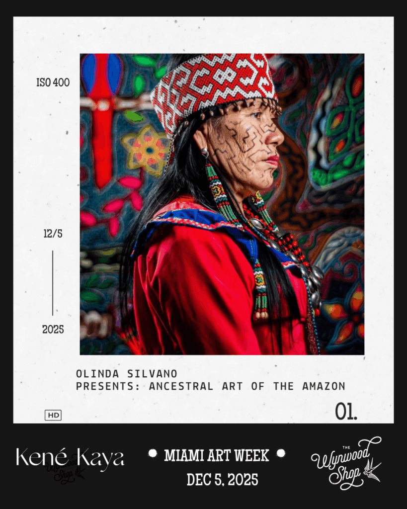 Join us on December 5th (3–9 PM) as Wynwood Shop proudly presents Olinda Silvano, celebrated Shipibo artist from the Peruvian Amazon.