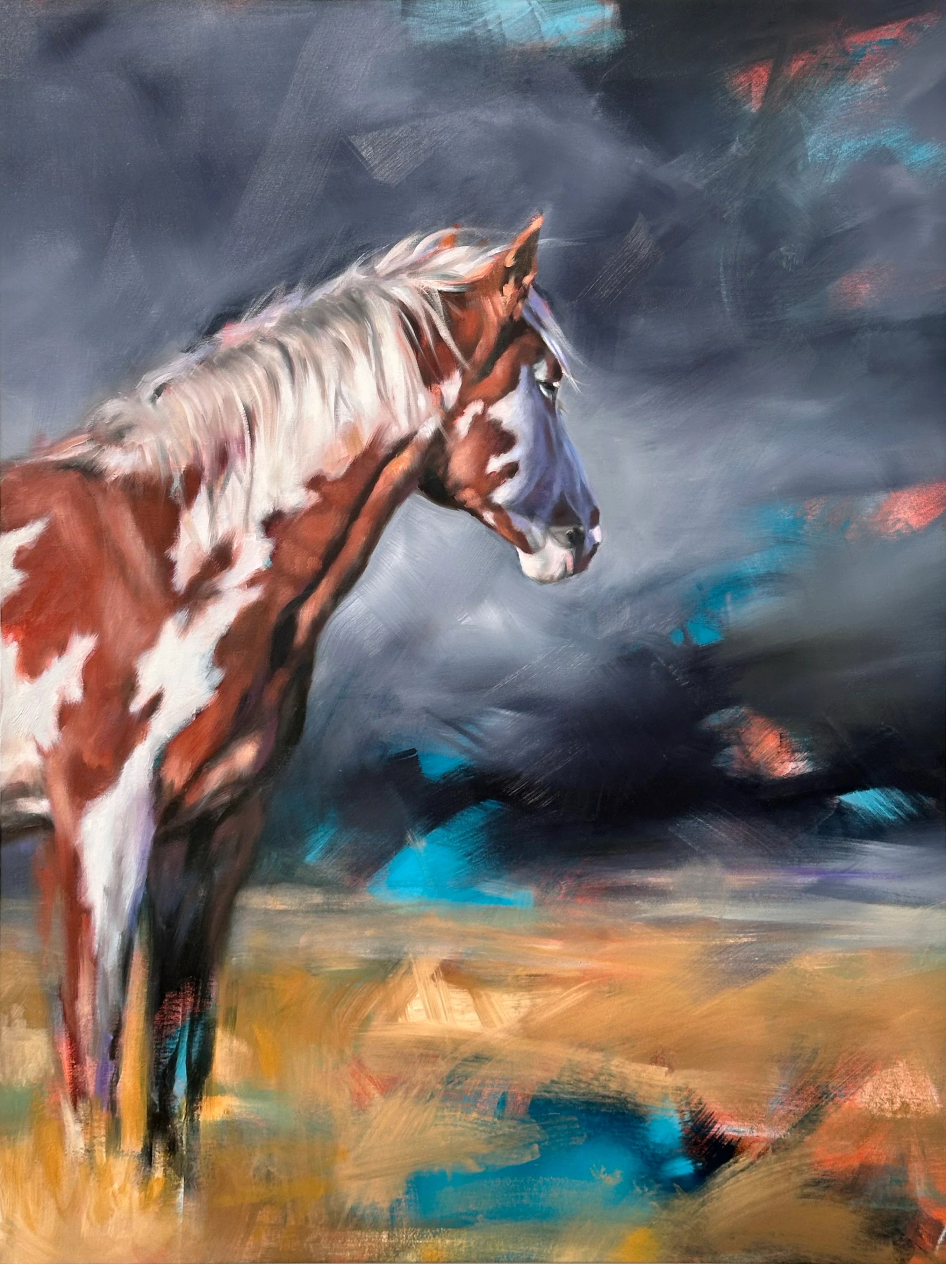 Consider “La Burra,” a portrait of a donkey that captures profound dignity and intelligence. The animal’s gaze is steady, knowing, present. Or “Untamed,” where a horse’s alert awareness radiates from the canvas. These aren’t traditional personality portraits. They’re meditations on presence itself, on what it means to inhabit a body and moment fully.